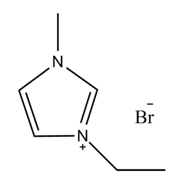 Het molecuul bestaat uit een imidazoliumkation met ethyl- en methylsubstituenten en een bromide-anion. Deze structuur vergemakkelijkt sterke ionische interacties en waterstofbindingen, wat bijdraagt aan de hoge oplosbaarheid ervan in zowel polaire als bepaalde niet-polaire oplosmiddelen. De polariteit maakt het ook mengbaar met water en veel organische oplosmiddelen zoals methanol, ethanol en acetonitril.