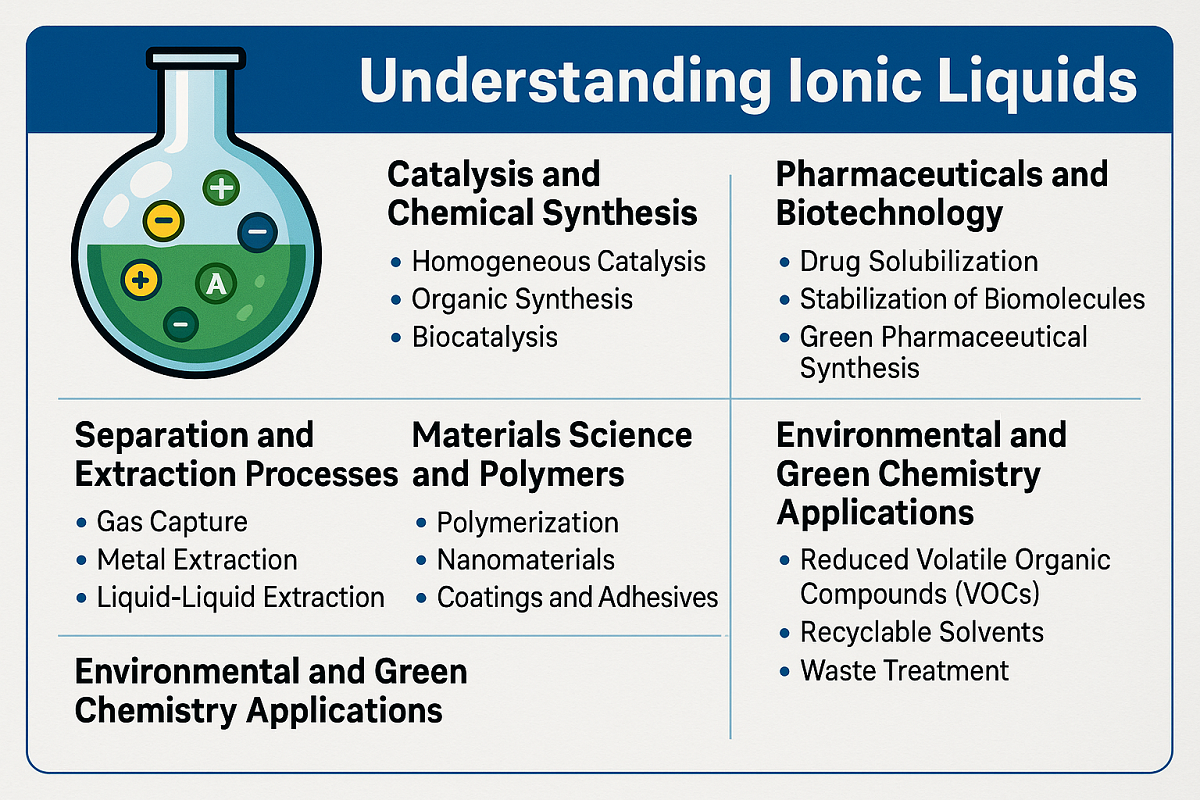Ionische vloeistoffen (IL's) zijn in de moderne industrie naar voren gekomen als een transformerende klasse van chemische verbindingen. Deze zouten bestaan volledig uit ionen en blijven vloeibaar bij relatief lage temperaturen, vaak onder de 100°C. Hun unieke eigenschappen, waaronder een verwaarloosbare dampdruk, hoge thermische stabiliteit, instelbare oplosbaarheid en uitzonderlijke ionische geleidbaarheid, maken ze tot aantrekkelijke alternatieven voor traditionele organische oplosmiddelen en reagentia. In de afgelopen twintig jaar zijn ionische vloeistoffen van niche-laboratoriumonderzoek uitgebreid naar een breed scala aan industriële toepassingen, die van invloed zijn geweest op gebieden van katalyse tot energieopslag, farmaceutische producten en materiaalverwerking.